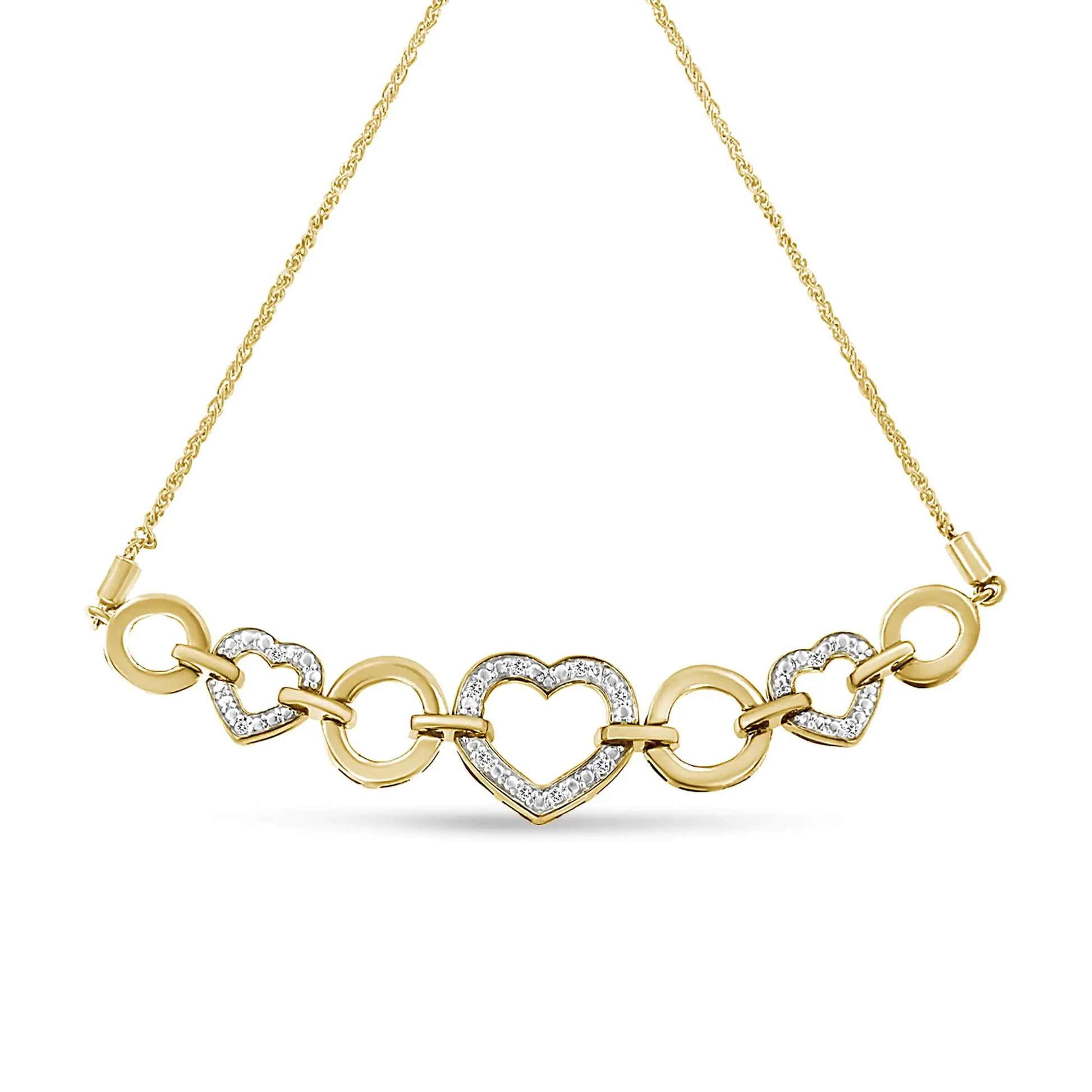 Stay on trend with this alluring chain bracelet. It is crafted of sterling silver and features interlocking heart and infinity accents that are adorned with sparkling round cut diamonds. This modern bracelet makes a perfect Valentine's Day gift, or as a unique twist on a promise ring; it's a classic romantic surprise she'll want to show off every day! It comes with a bolo clasp that allows you to adjust the chain of a bracelet according to your wrist. Bracelet features secure slider and can adjust from 6" to 9".