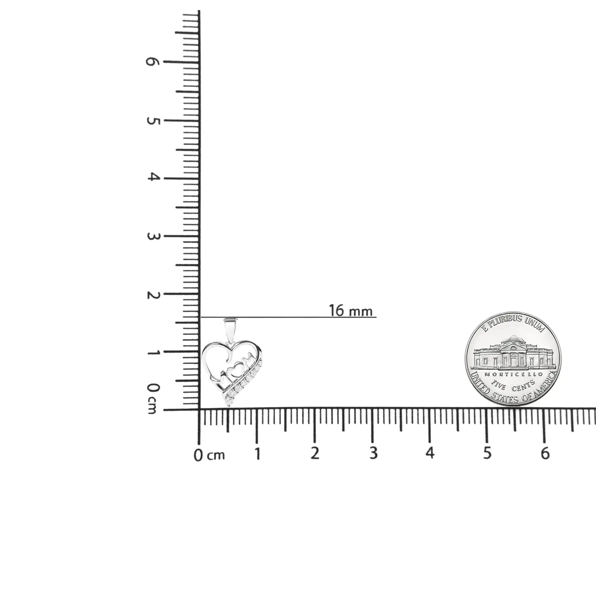 Celebrate the love and bond with your mother with this stunning pendant necklace. Expertly crafted with .925 sterling silver, this necklace features a beautiful open heart design that is delicately adorned with eight sparkling diamonds. With a total weight of 1/4 carats, the diamonds shine in I-J color and I2-I3 clarity, adding the perfect touch of glamour and elegance to this gorgeous piece. The "Mom" word is elegantly engraved, making this a meaningful and sentimental gift that she will treasure forever. The 18-inch box chain secures with a spring ring clasp, ensuring that this piece stays safely and comfortably around her neck. Show your love and appreciation for the most important woman in your life with this stunning open heart pendant necklace.
