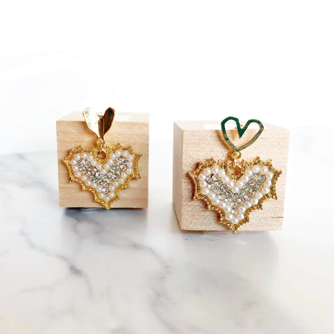 Distinctive design with a full and a hollow heart on each ear lobe.